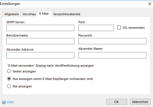 Mit dieser Option kann definiert werden, ob der "E-Mail versenden" Dialog nach der Veröffentlichung angezeigt werden soll.