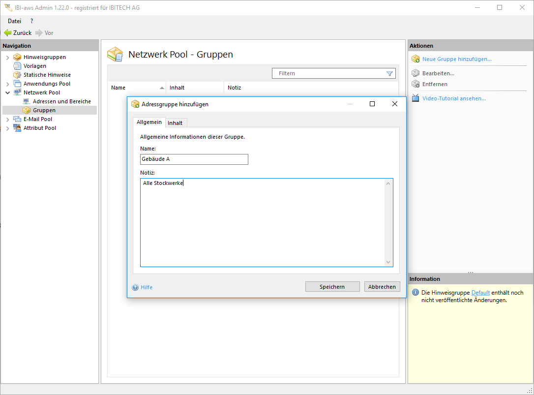 Im Netzwerk Pool können Adressen und Bereiche zur besseren Übersicht zu einer Gruppe zusammengefasst werden.