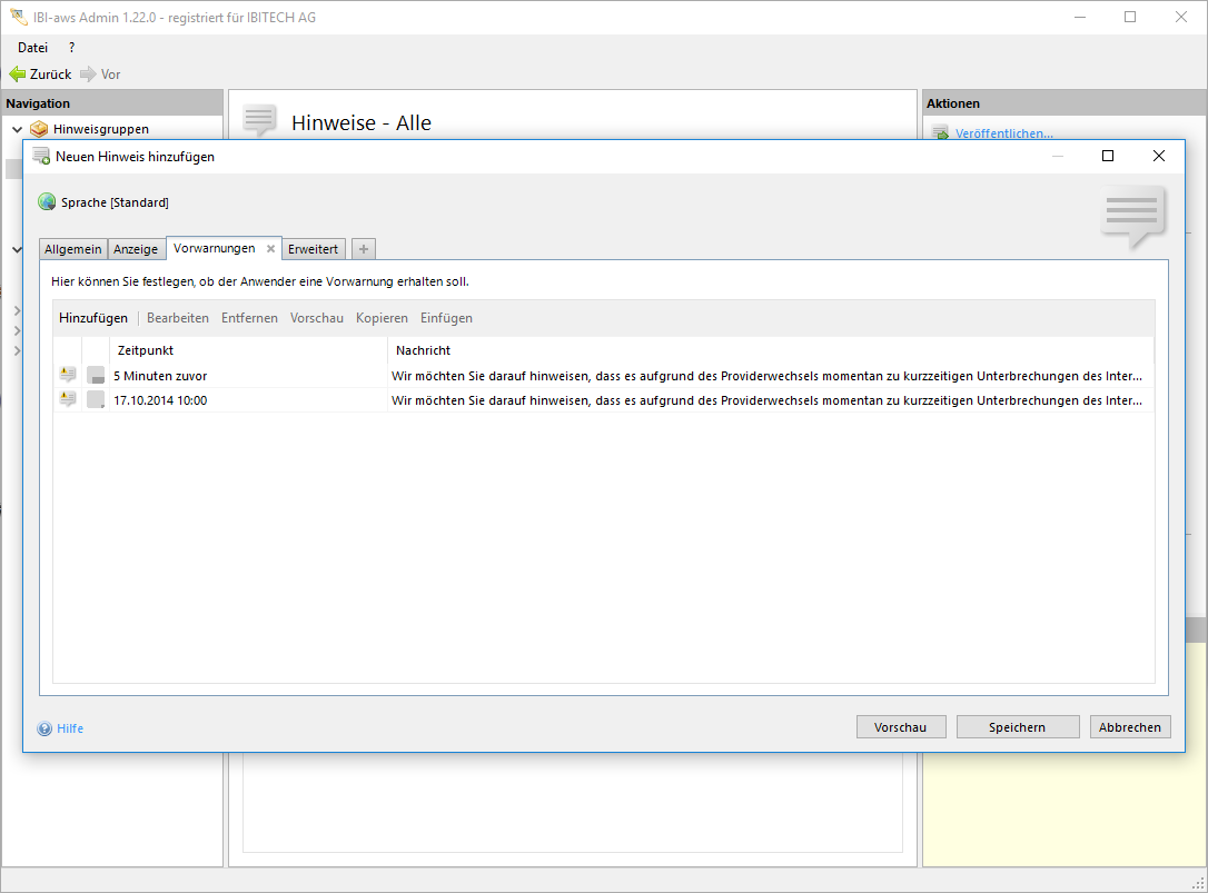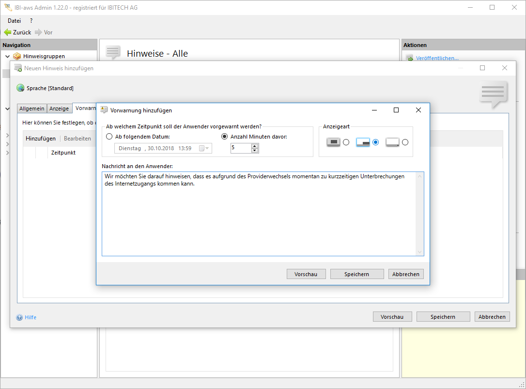 Mit einer Vorwarnung können die Anwender bei Bedarf bereits im Vorfeld über einen geplanten Unterbruch oder sonstige Ereignisse informiert werden.