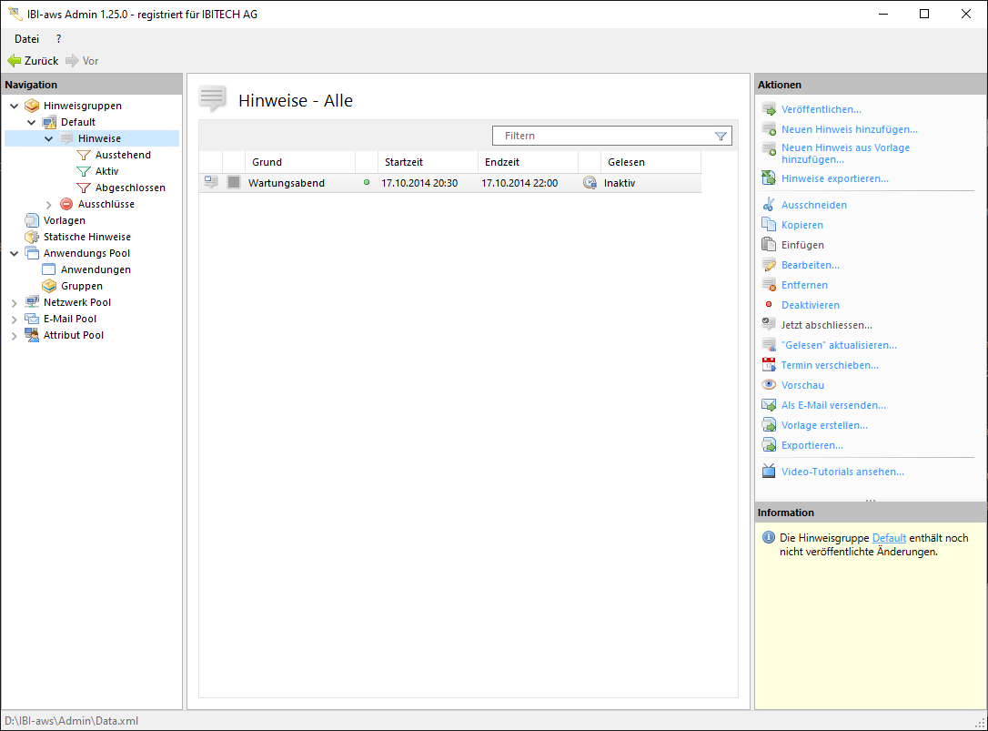 Die Kernaufgabe von IBI-aws besteht darin, Anwender zu informieren. Dies geschieht mittels Hinweisen. Hinweise werden innerhalb einer Hinweisgruppe definiert.