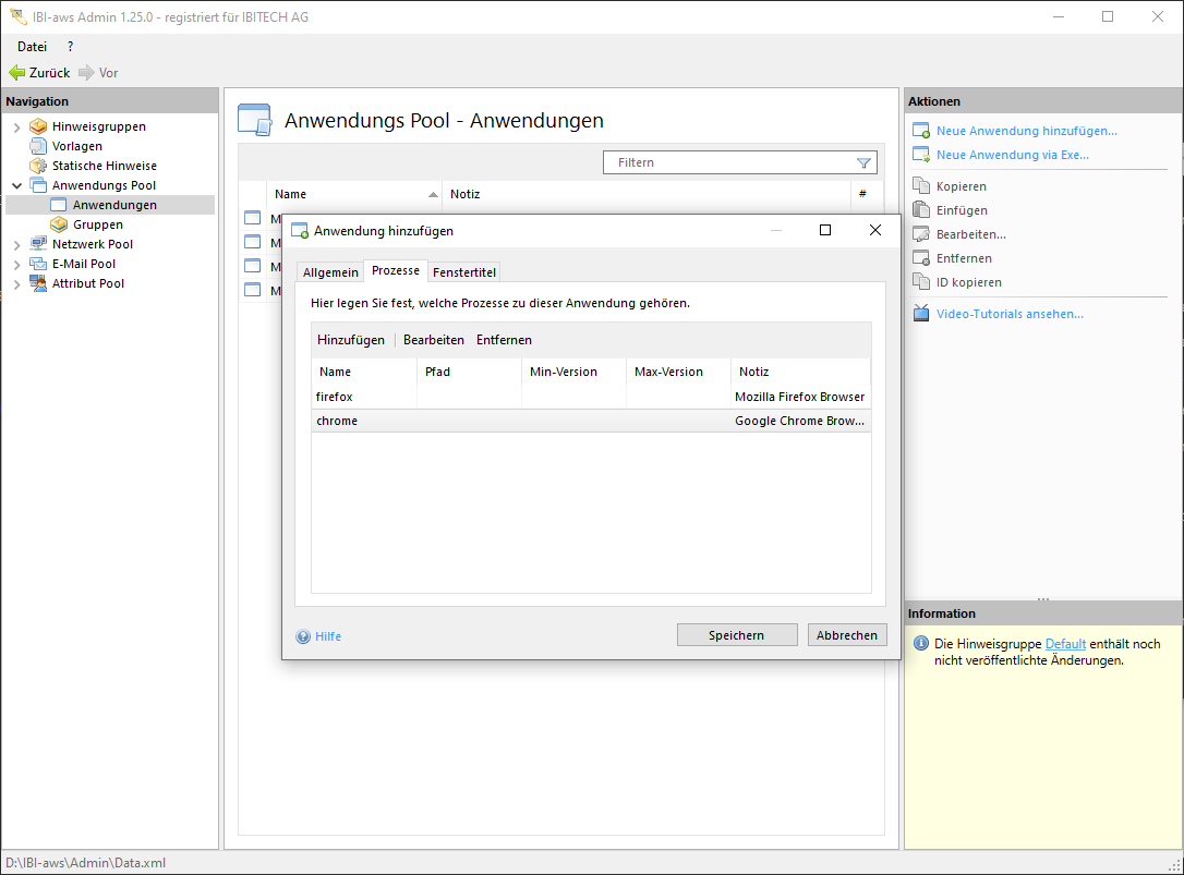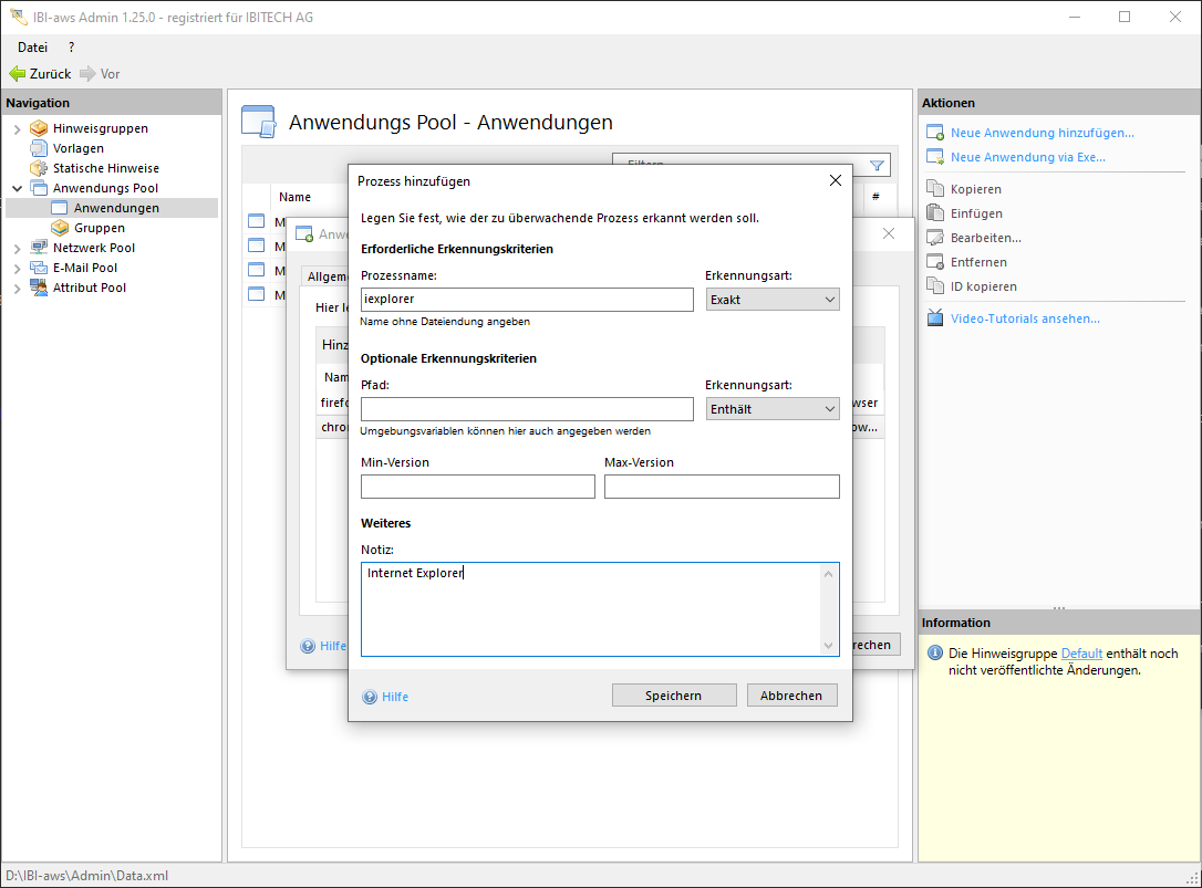 Prozess hinzufügen/bearbeiten
