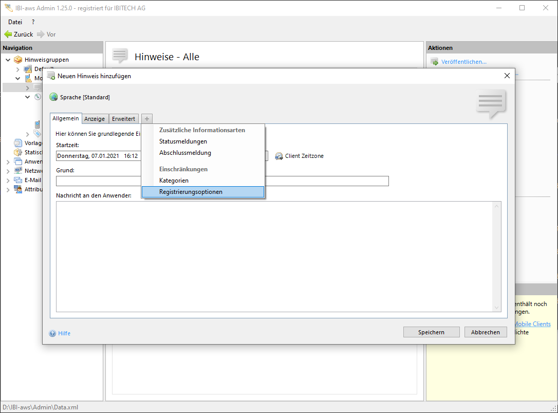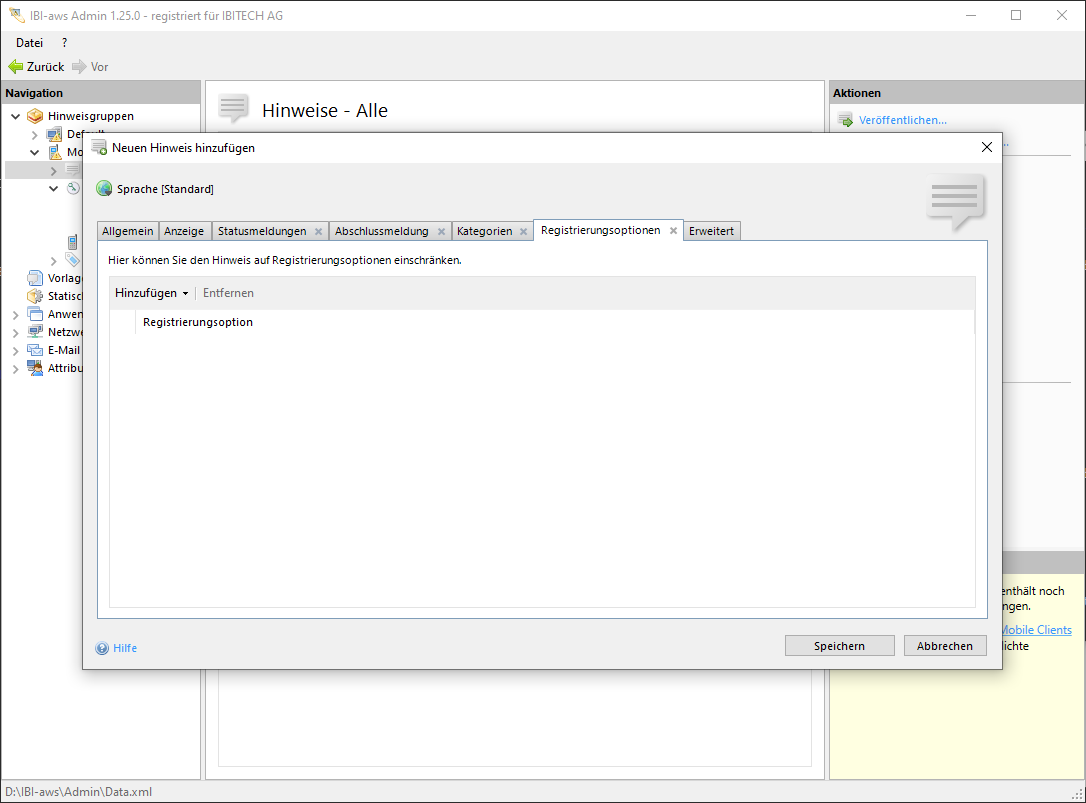 Hinweise die Einschränkungen auf Registrierungsoptionen enthalten, werden nur Anwendern angezeigt, die eine der angegebenen Registrierungsoption verwendet haben.