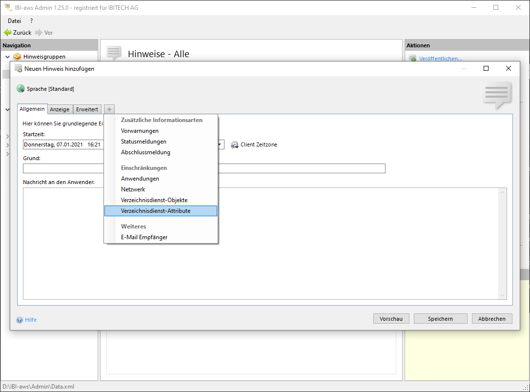 Verzeichnisdienst-Einschränkungen können aus verschiedenen Verzeichnisdiensten stammen. Der IBI-aws Client verhält sich in einem solchen Fall wie folgt: