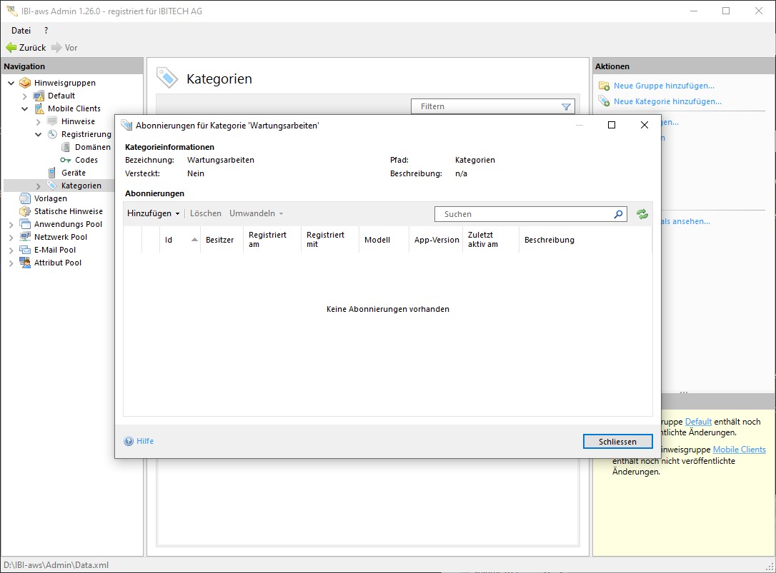In diesem Dialog können die Abonnierungen der ausgewählten Katgorie bearbeitet werden.