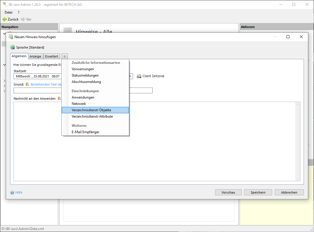 Verzeichnisdienst-Einschränkungen können aus verschiedenen Verzeichnisdiensten stammen. Der IBI-aws Client verhält sich in einem solchen Fall wie folgt: