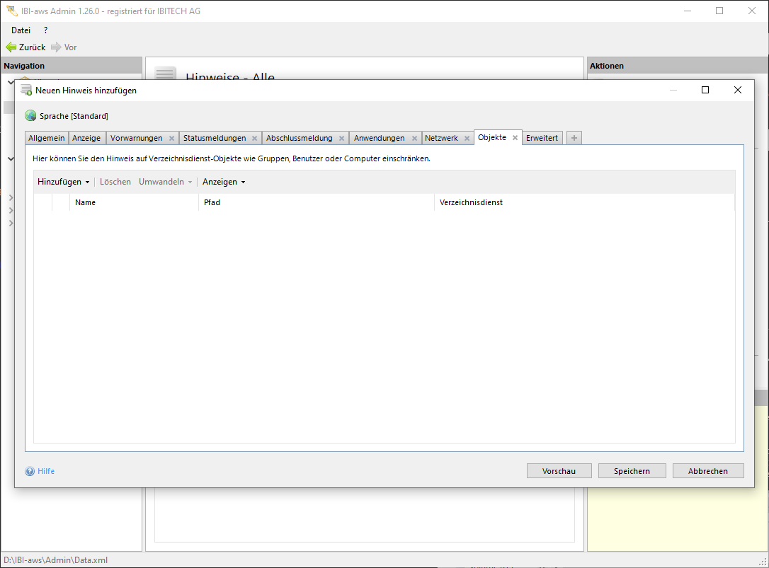 In diesem Reiter kann ein Hinweis auf bestimmte Verzeichnisdienst-Objekte wie Benutzer, Gruppen, Computer oder Organisationseinheiten eingeschränkt werden. Es sind sowohl Einschlüsse, wie auch Ausschlüsse möglich.