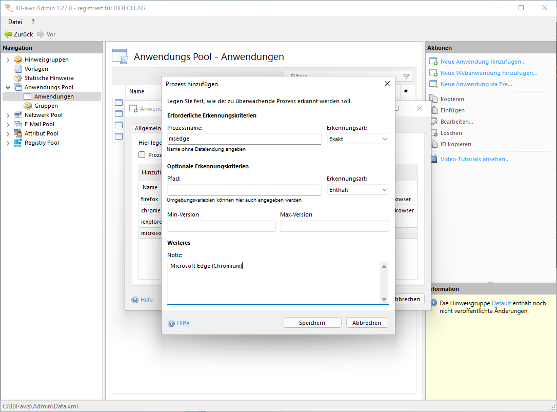 Prozess hinzufügen/bearbeiten