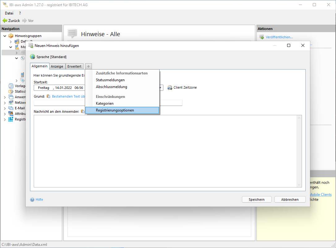 Hinweise die Einschränkungen auf Registrierungsoptionen enthalten, werden nur Anwendern angezeigt, die eine der angegebenen Registrierungsoption verwendet haben.