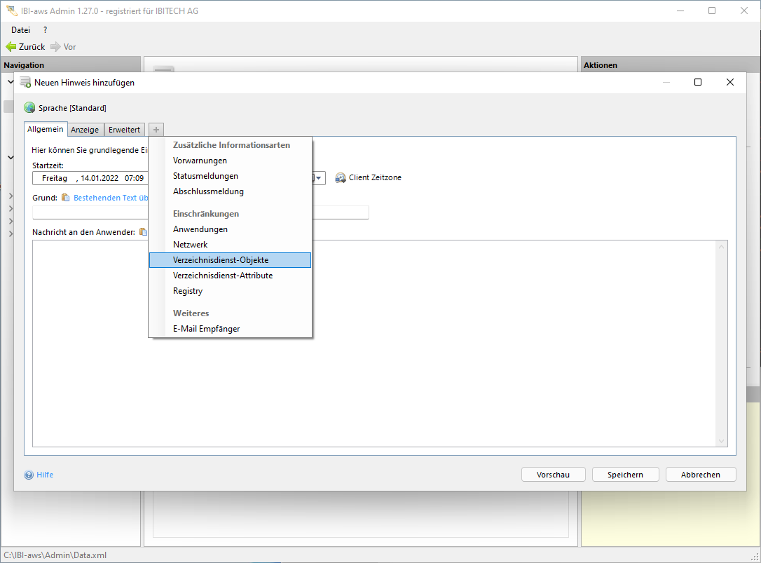 Verzeichnisdienst-Einschränkungen können aus verschiedenen Verzeichnisdiensten stammen. Der IBI-aws Client verhält sich in einem solchen Fall wie folgt: