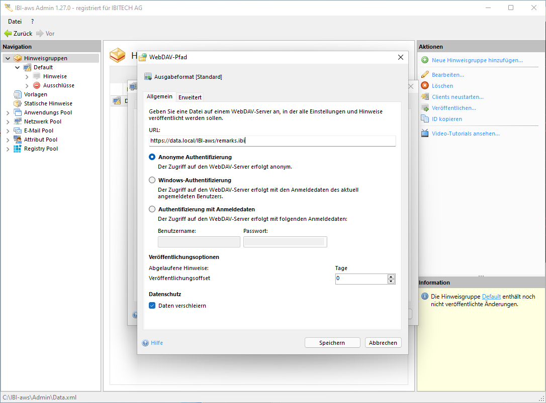 - Standard (Es wird eine Hinweisdatei für den IBI-aws Client erstellt)