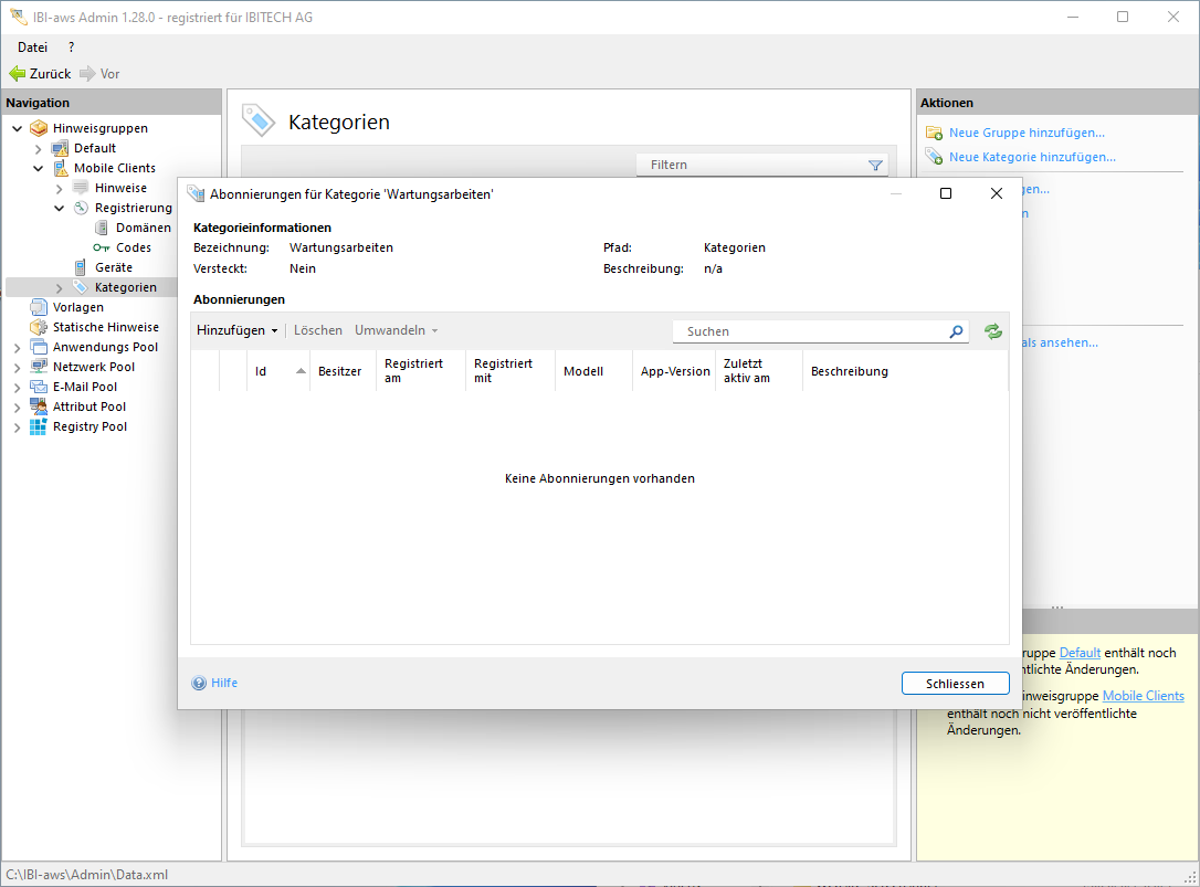 In diesem Dialog können die Abonnierungen der ausgewählten Katgorie bearbeitet werden.