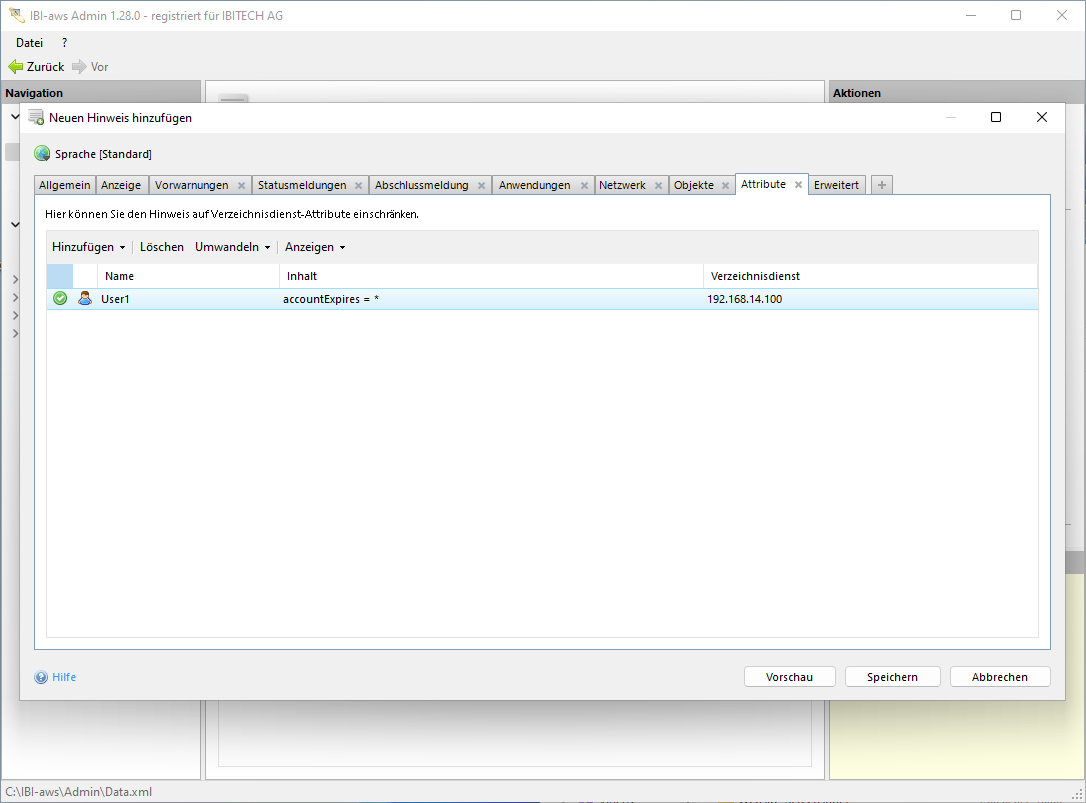 In diesem Reiter kann ein Hinweis auf Benutzer oder Computer eingeschränkt werden, welche bestimmte Verzeichnisdienst-Attribute besitzen. Es sind sowohl Einschlüsse, wie auch Ausschlüsse möglich.
