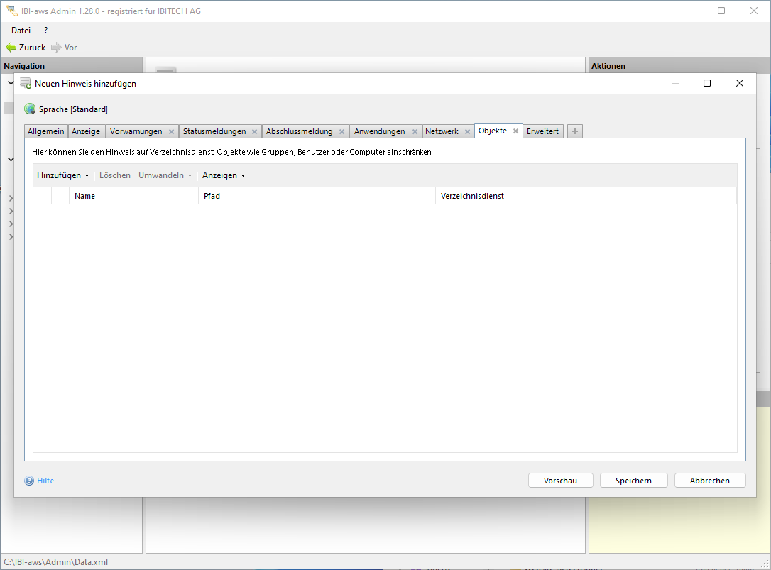 In diesem Reiter kann ein Hinweis auf bestimmte Verzeichnisdienst-Objekte wie Benutzer, Gruppen, Computer oder Organisationseinheiten eingeschränkt werden. Es sind sowohl Einschlüsse, wie auch Ausschlüsse möglich.