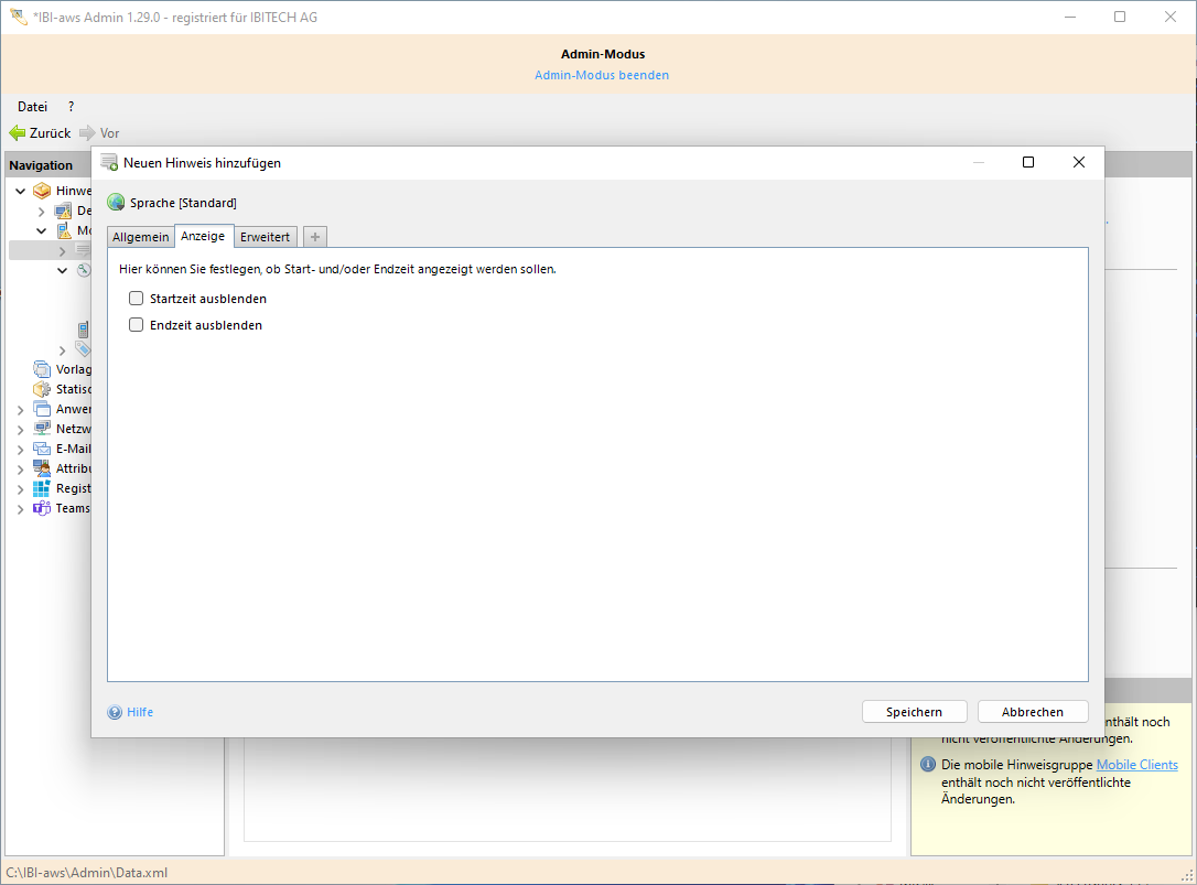 Im Bereich Anzeige können bei Bedarf die Start- und/oder Endzeit ausgeblendet werden