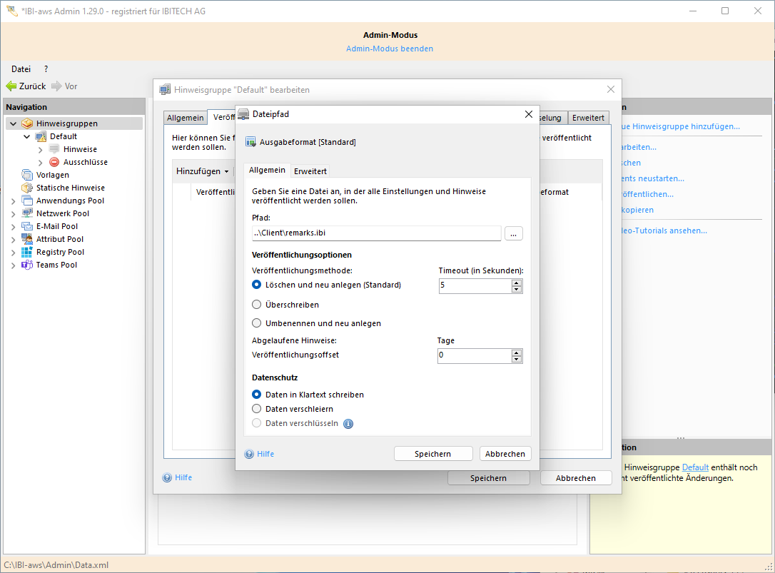 - Standard (Es wird eine Hinweisdatei für den IBI-aws Client erstellt)