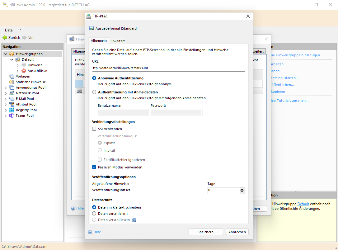 - Standard (Es wird eine Hinweisdatei für den IBI-aws Client erstellt)
