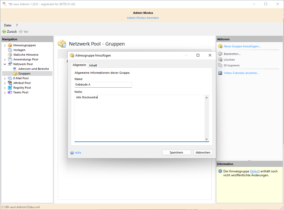 Die Notiz ist nur innerhalb des IBI-aws Admins sichtbar und kann somit zum Beispiel für eine genauere Beschreibung verwendet werden.