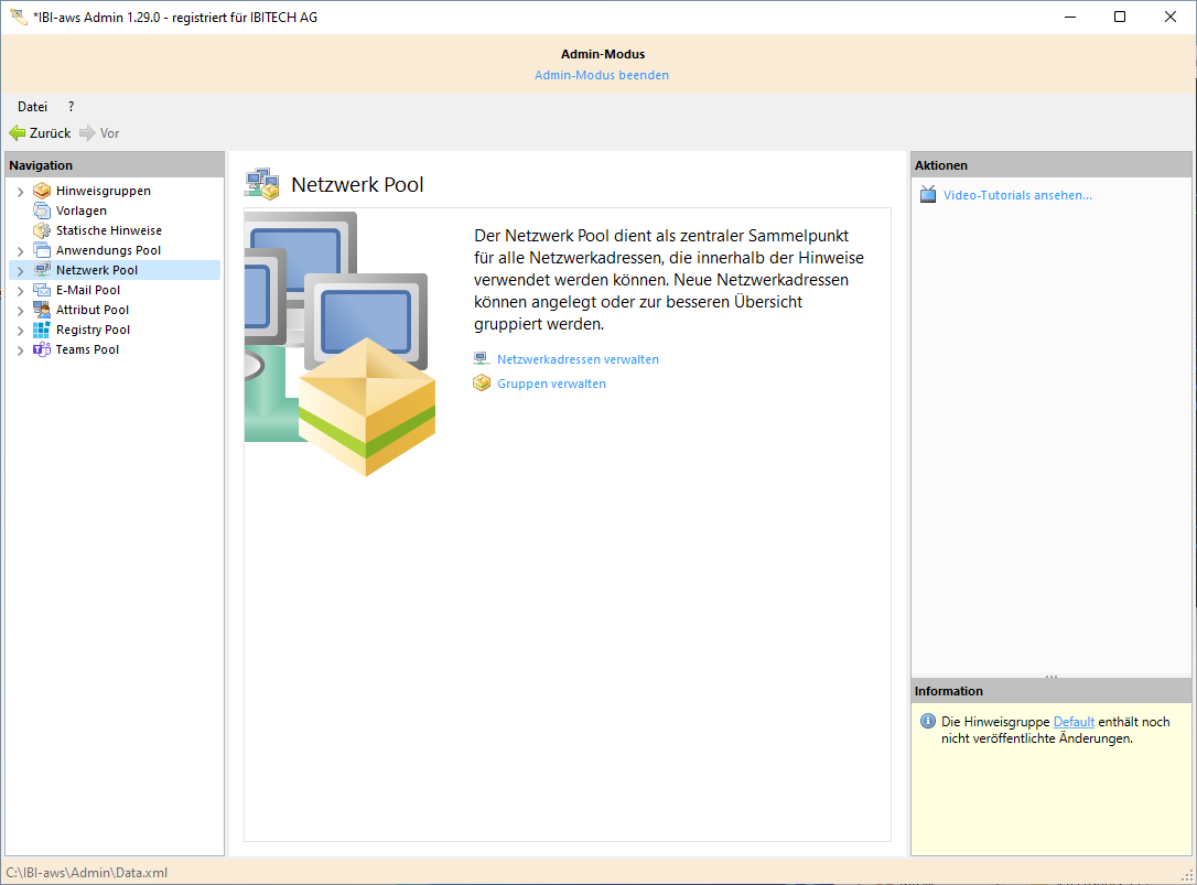 Der Netzwerk Pool dient als zentraler Sammelpunkt für alle Netzwerkadressen, für die gegebenenfalls Hinweise erstellt werden sollen. Zur besseren Übersicht können Netzwerkadressen (und –Bereiche) analog zu Anwendungen im Anwendungs Pool gruppiert werden.