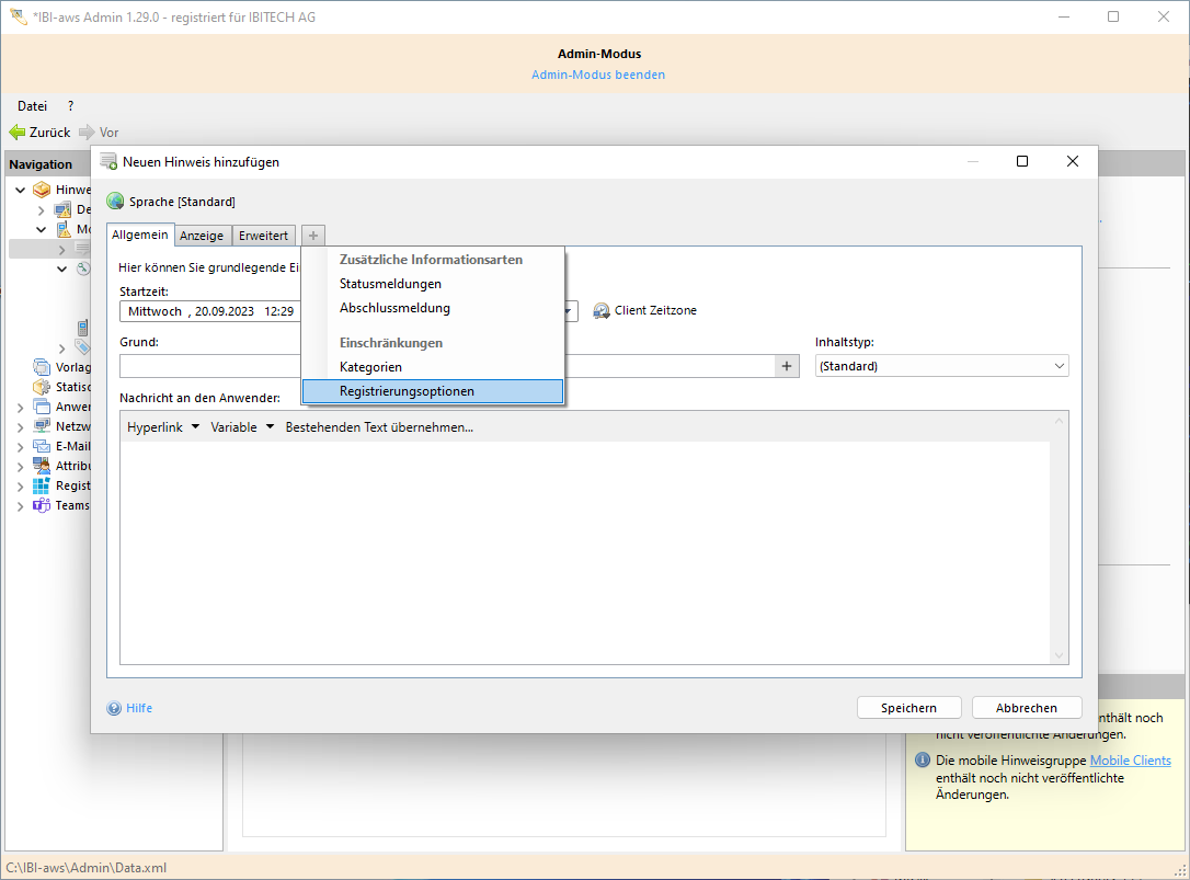 Hinweise die Einschränkungen auf Registrierungsoptionen enthalten, werden nur Anwendern angezeigt, die eine der angegebenen Registrierungsoption verwendet haben.
