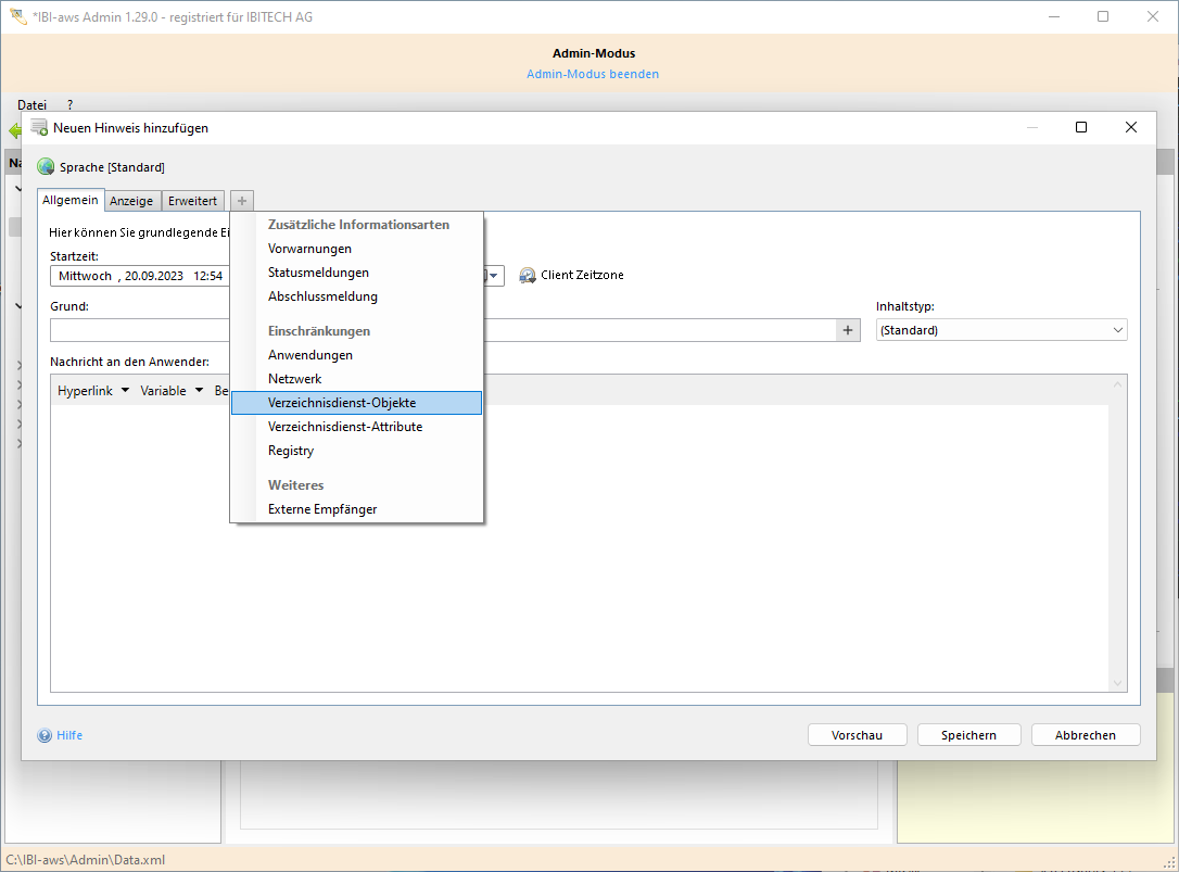 Verzeichnisdienst-Einschränkungen können aus verschiedenen Verzeichnisdiensten stammen. Der IBI-aws Client verhält sich in einem solchen Fall wie folgt:
