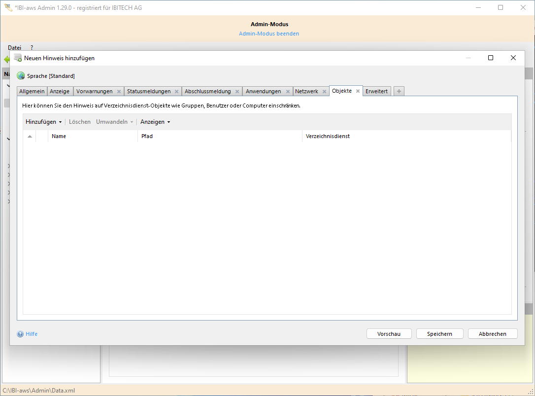 In diesem Reiter kann ein Hinweis auf bestimmte Verzeichnisdienst-Objekte wie Benutzer, Gruppen, Computer oder Organisationseinheiten eingeschränkt werden. Es sind sowohl Einschlüsse, wie auch Ausschlüsse möglich.