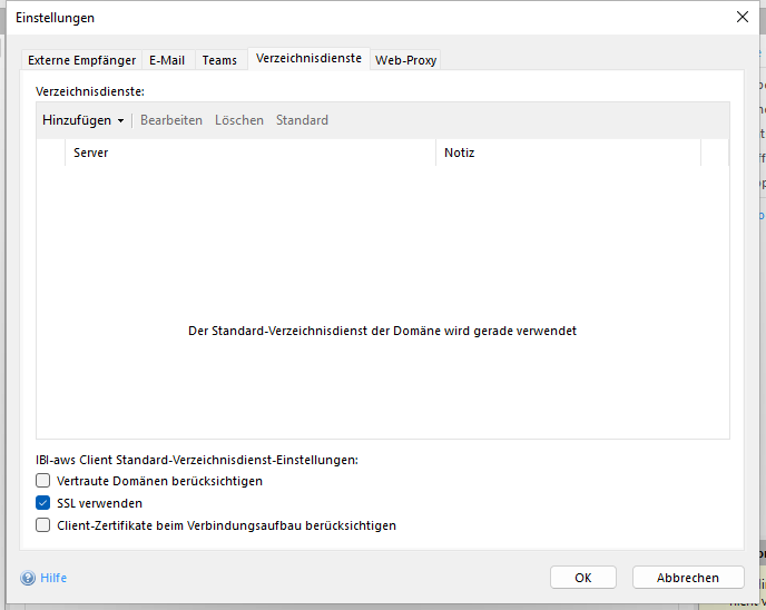 IBI-aws Client Standard-Verzeichnisdienst-Einstellungen