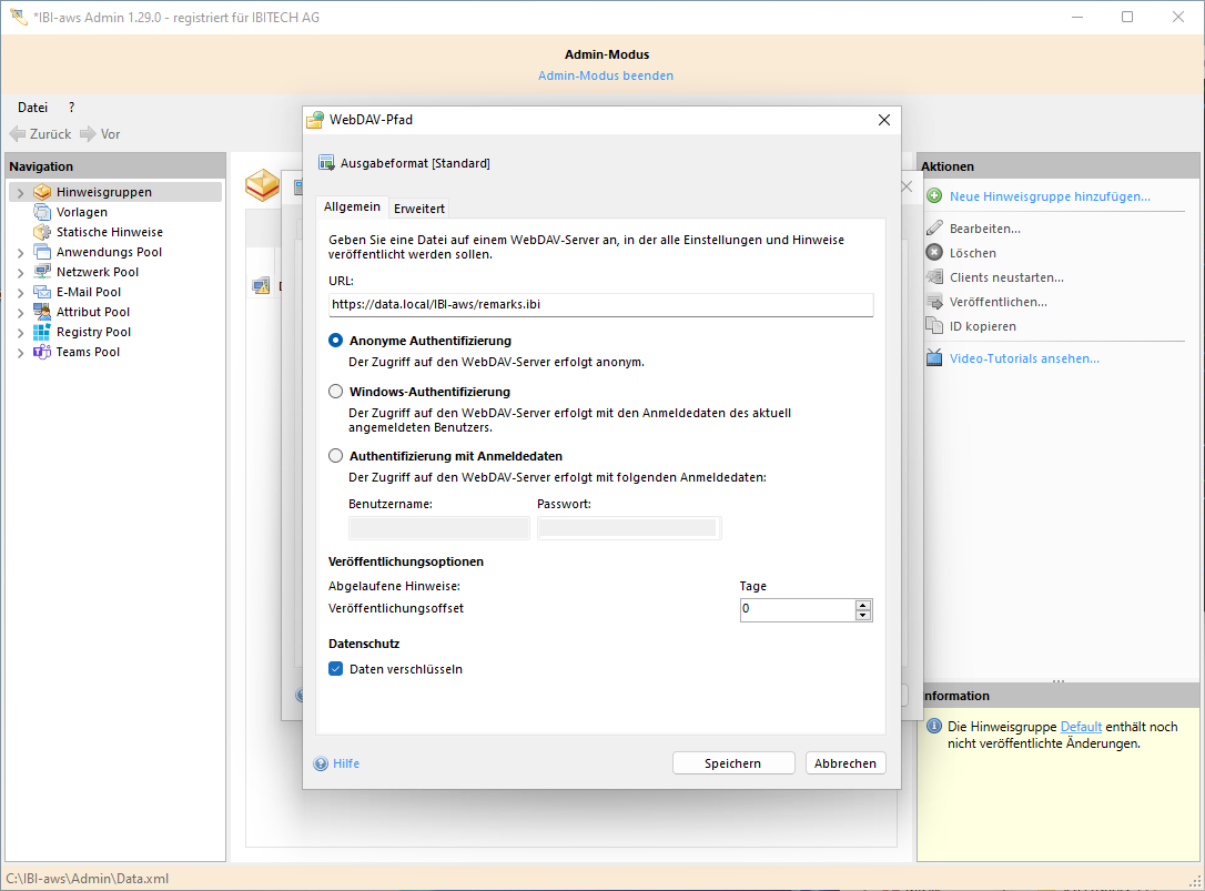 - Standard (Es wird eine Hinweisdatei für den IBI-aws Client erstellt)