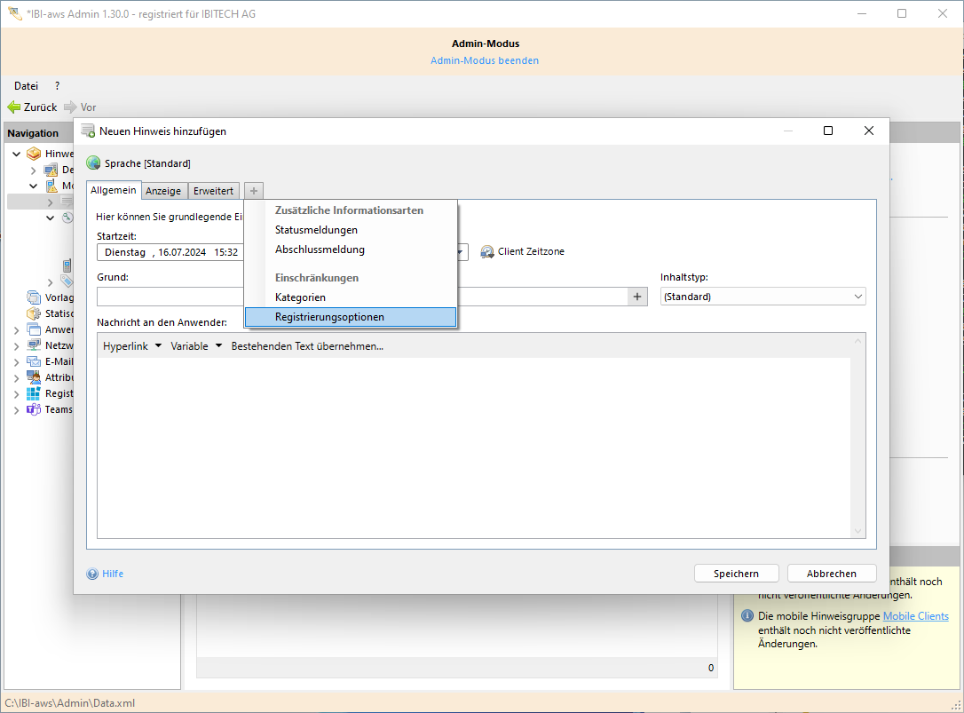 Hinweise die Einschränkungen auf Registrierungsoptionen enthalten, werden nur Anwendern angezeigt, die eine der angegebenen Registrierungsoption verwendet haben.
