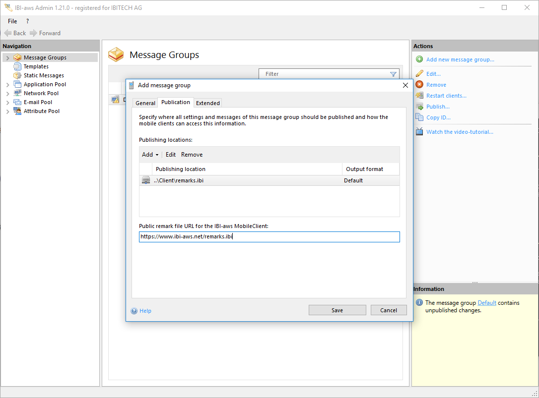The public URL to the message file must be reachable by all IBI-aws MobileClients. HTTP and HTTPS URLs are allowed.