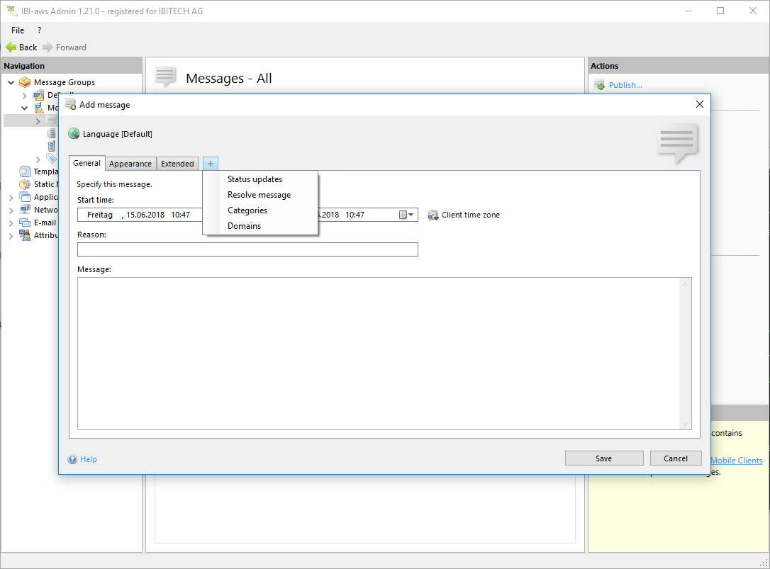 Every restriction type has a tab within the message dialog. These tabs are collapsed by default and can be made visible by clicking on the + button.