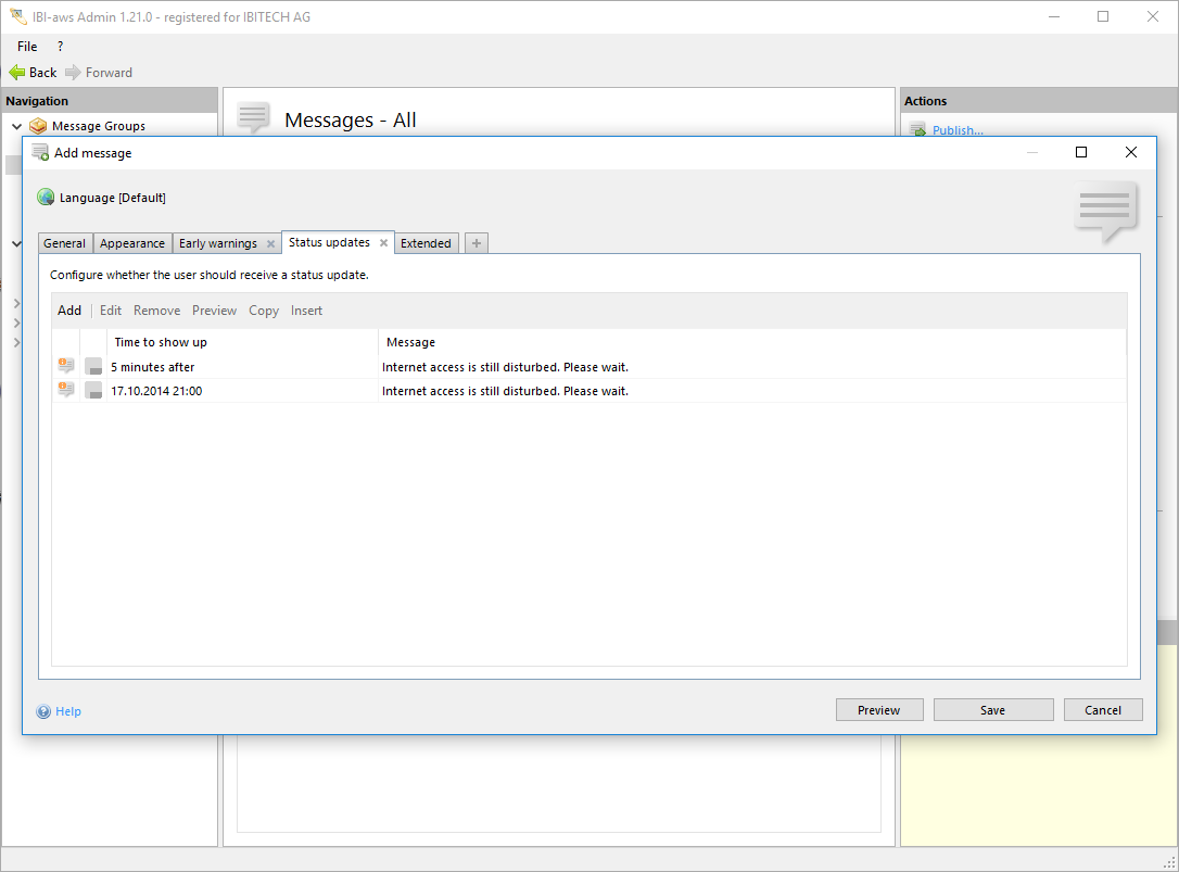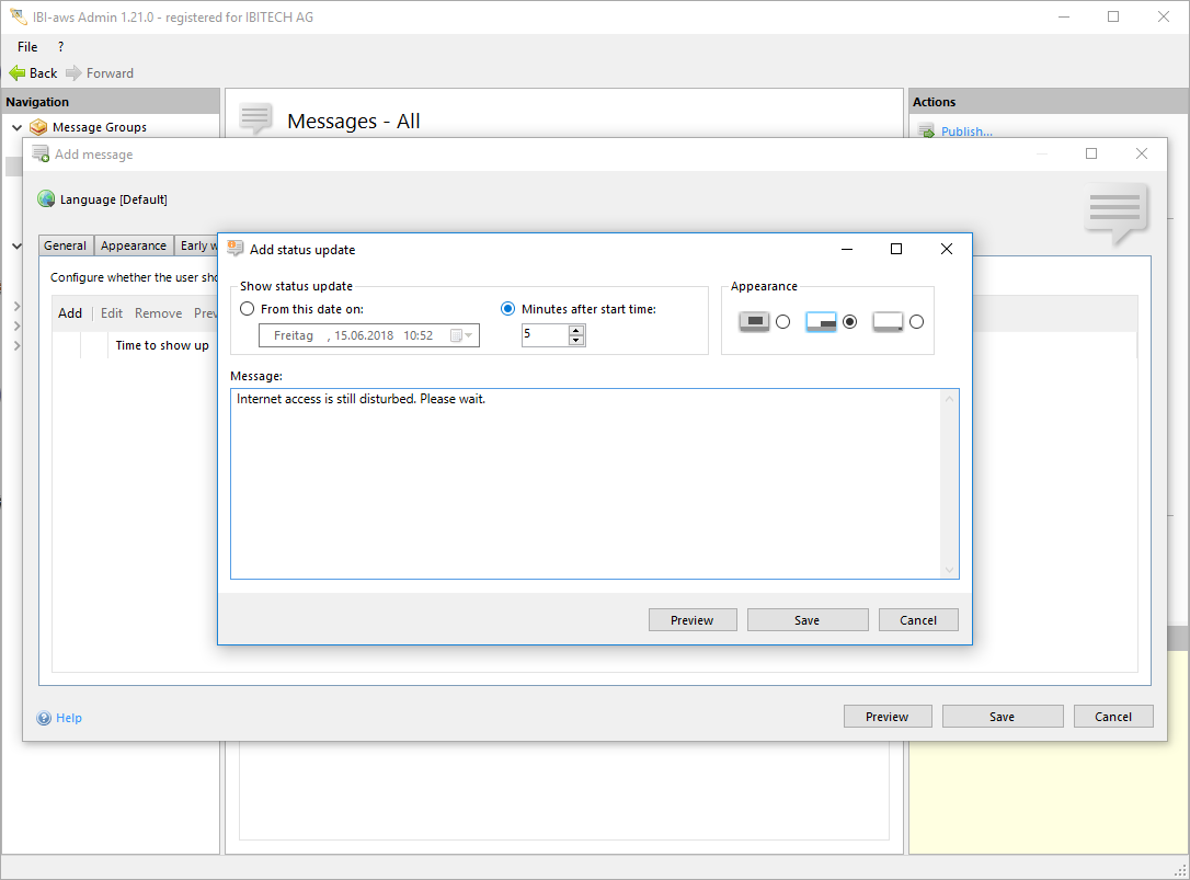 Use this button to view a preview of the status update like it will be displayed on the user's screen.