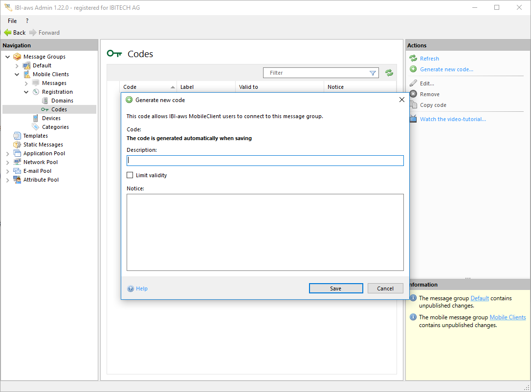 By generating a code, IBI-aws MobileClient users can register for the corresponding hint group using this code.