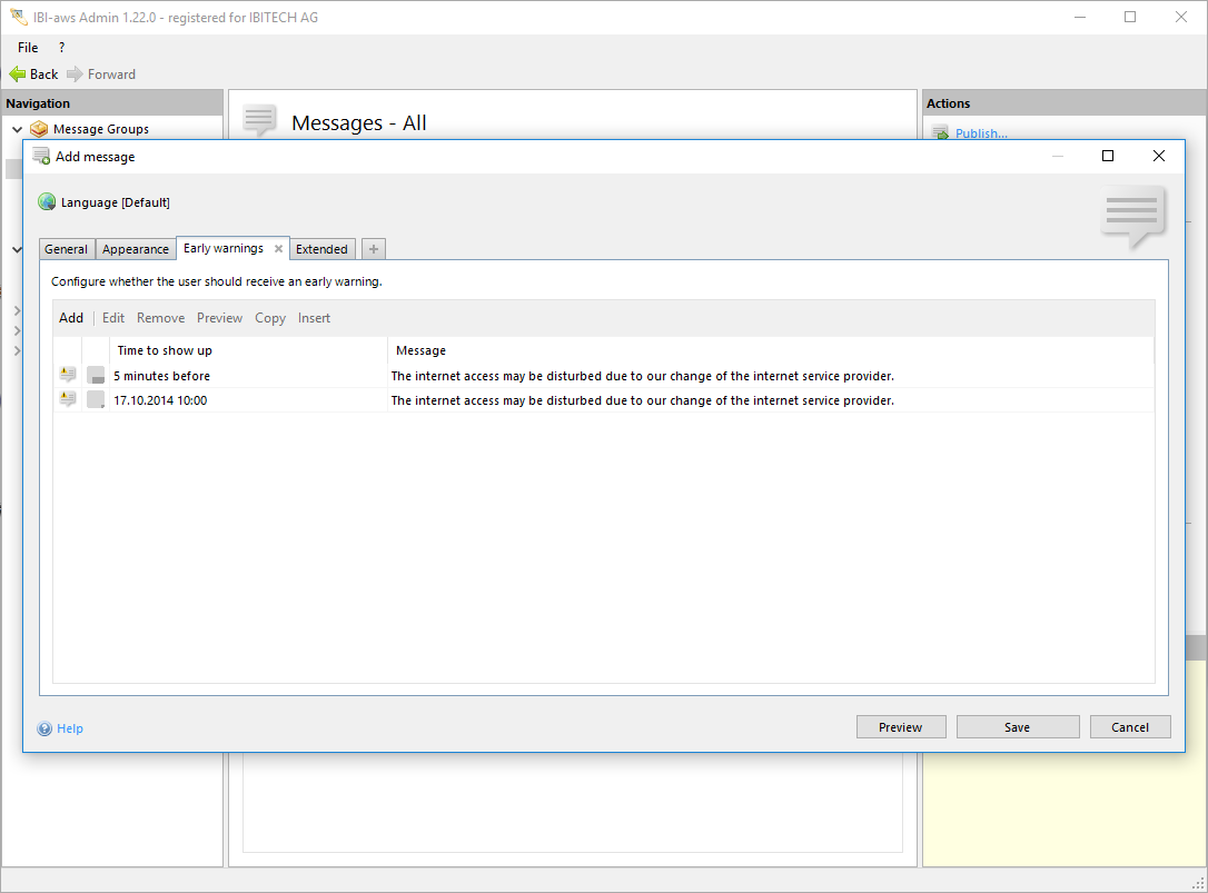 Use this button to view a preview of the early warning like it will be displayed on the user's screen.