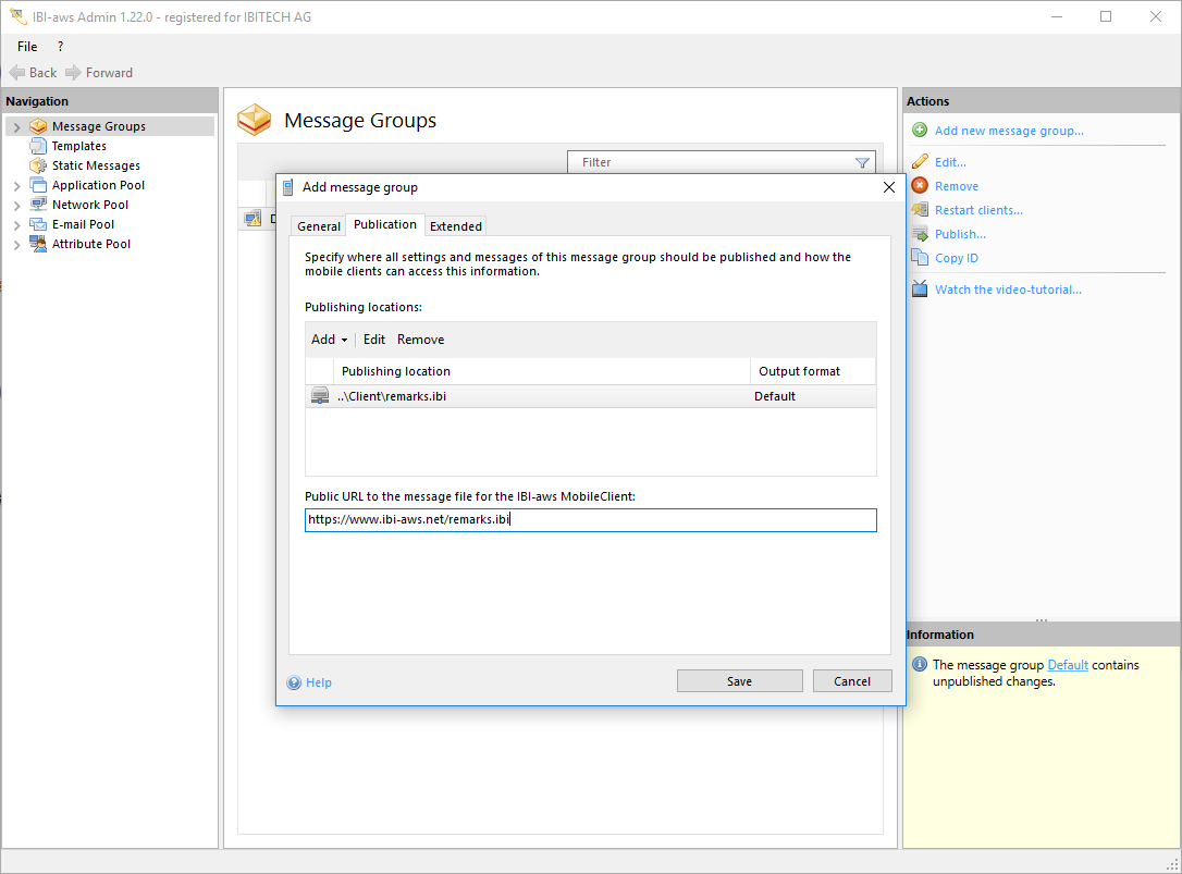 The public URL to the message file must be reachable by all IBI-aws MobileClients. HTTP and HTTPS URLs are allowed.