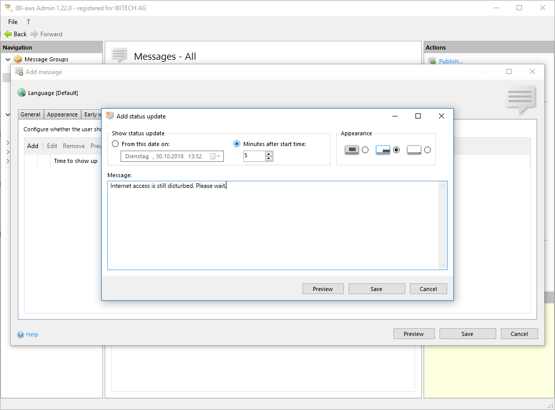 Use this button to view a preview of the status update like it will be displayed on the user's screen.