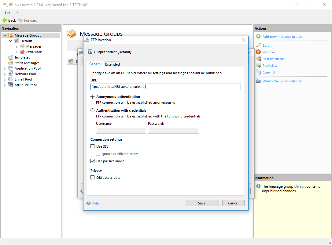 - Default (a message file for the IBI-aws Client will be created)
