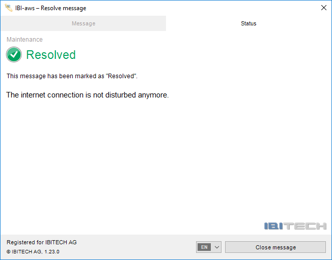 A resolve message serves to inform all message recipients about the resolve of the information (e.g. incident) that has been transported by the original message. The resolve message will only be displayed to users that have seen the original message before. The display duration specifies how long the resolve message should be valid after the message' end time.