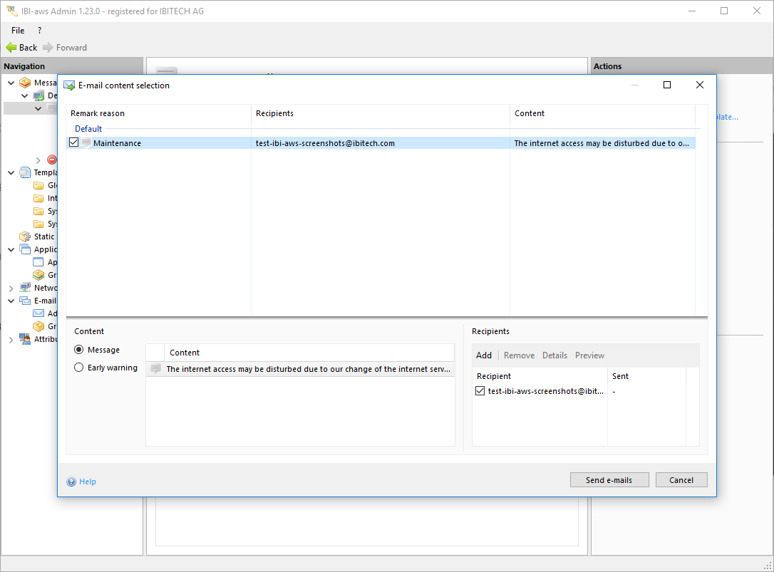 Furthermore, you can define in the e-mail settings whether and how the e-mail delivery should be integrated into the publication process.
