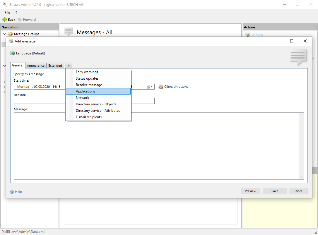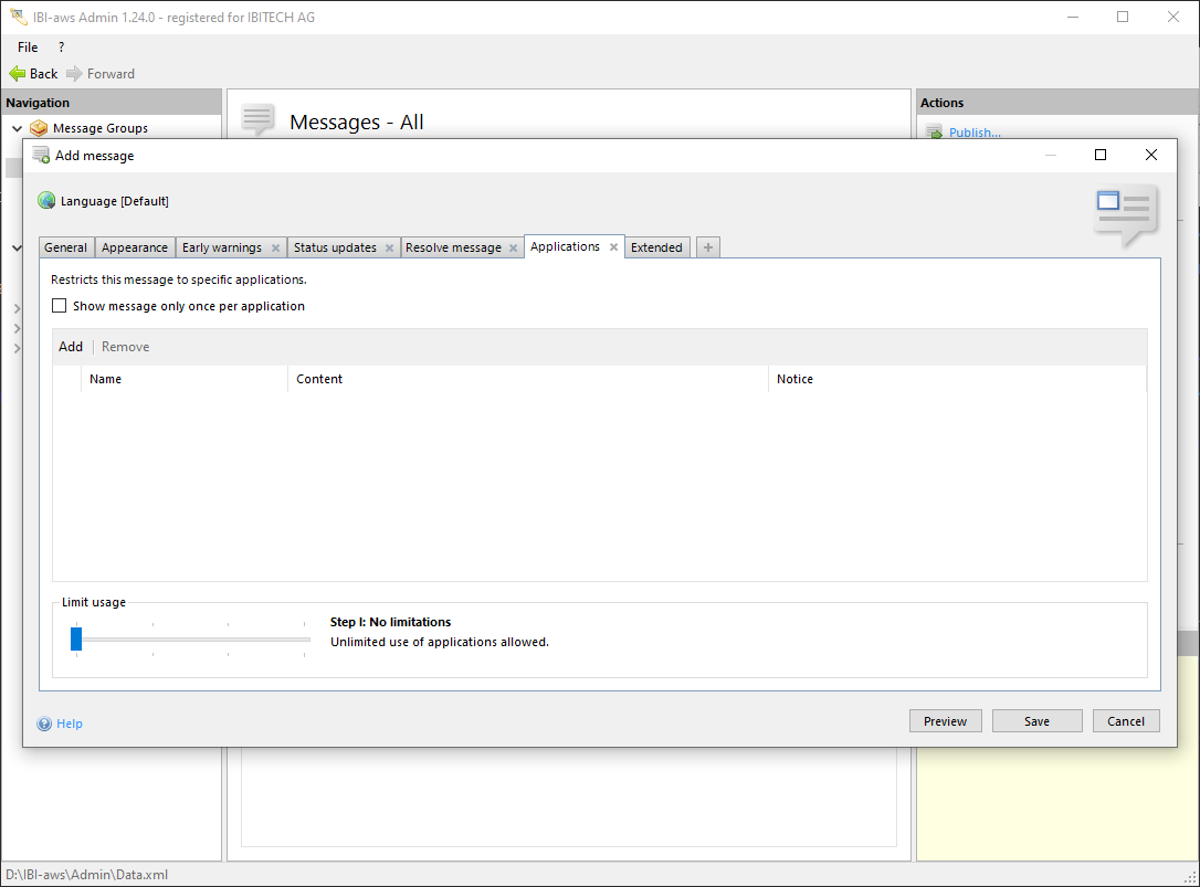 If IBI-aws recognizes an application that is assigned to the message the message will be displayed. If IBI-aws recognizes the same application again the message will not be displayed again.