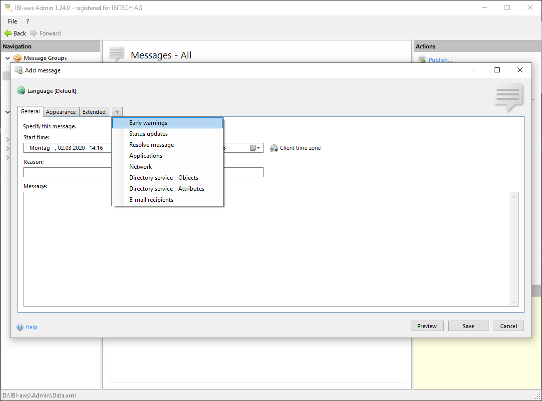 If IBI-aws recognizes an application that is assigned to the message the current warning will be displayed. If IBI-aws recognizes the same application again the warning will be displayed once more. Warnings can be displayed several times. They will be displayed whenever using an application or restarting an application that has been specified as a trigger within the message.