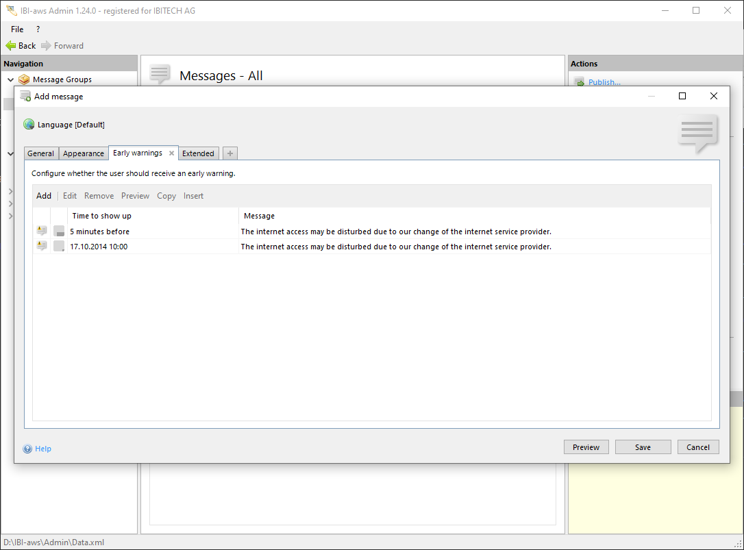 Use this button to view a preview of the early warning like it will be displayed on the user's screen.