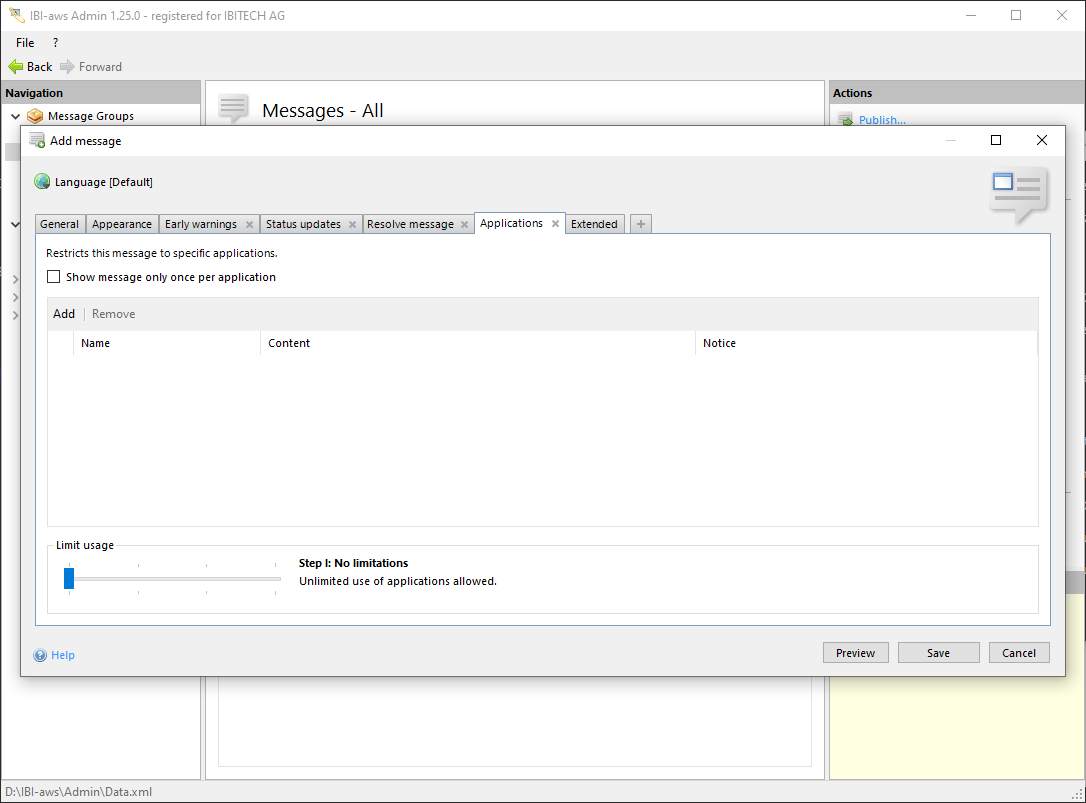 If IBI-aws recognizes an application that is assigned to the message the message will be displayed. If IBI-aws recognizes the same application again the message will be displayed once more.