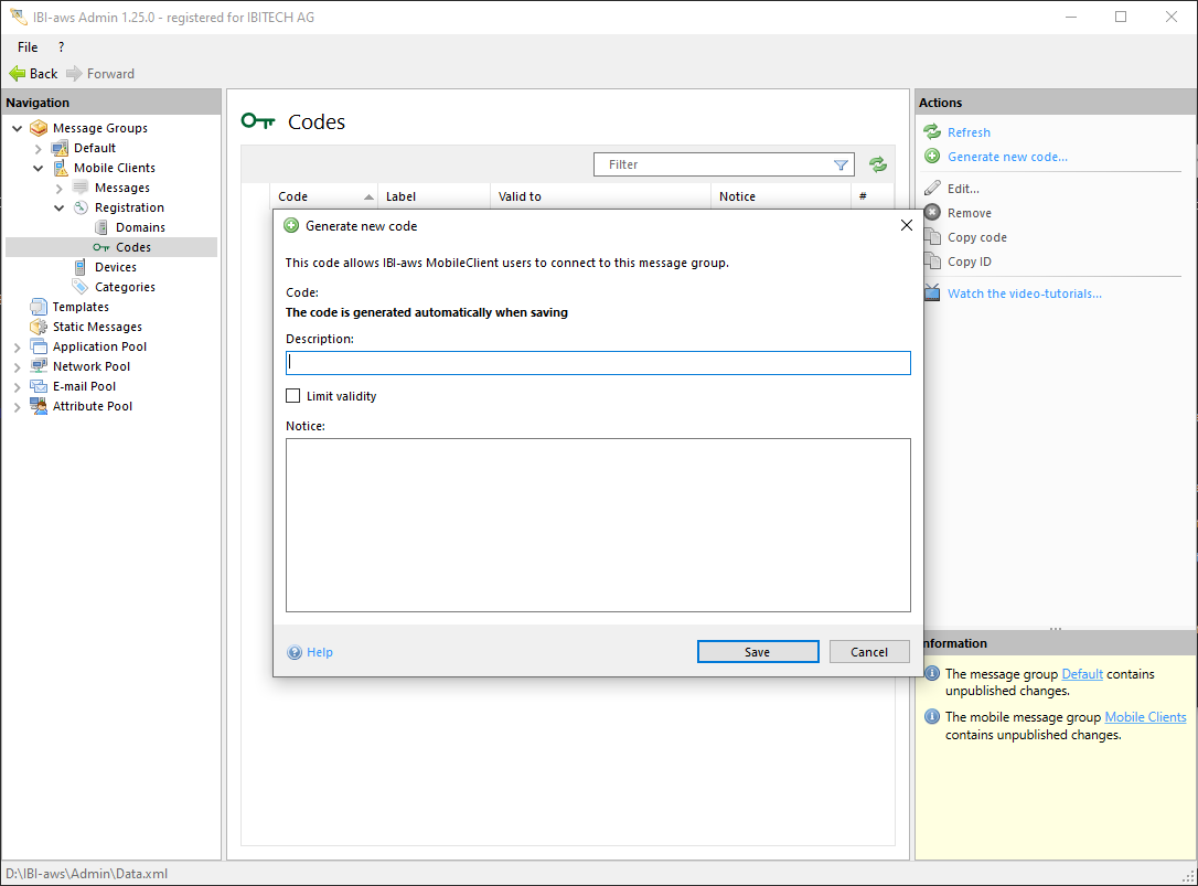 By generating a code, IBI-aws MobileClient users can register for the corresponding hint group using this code.