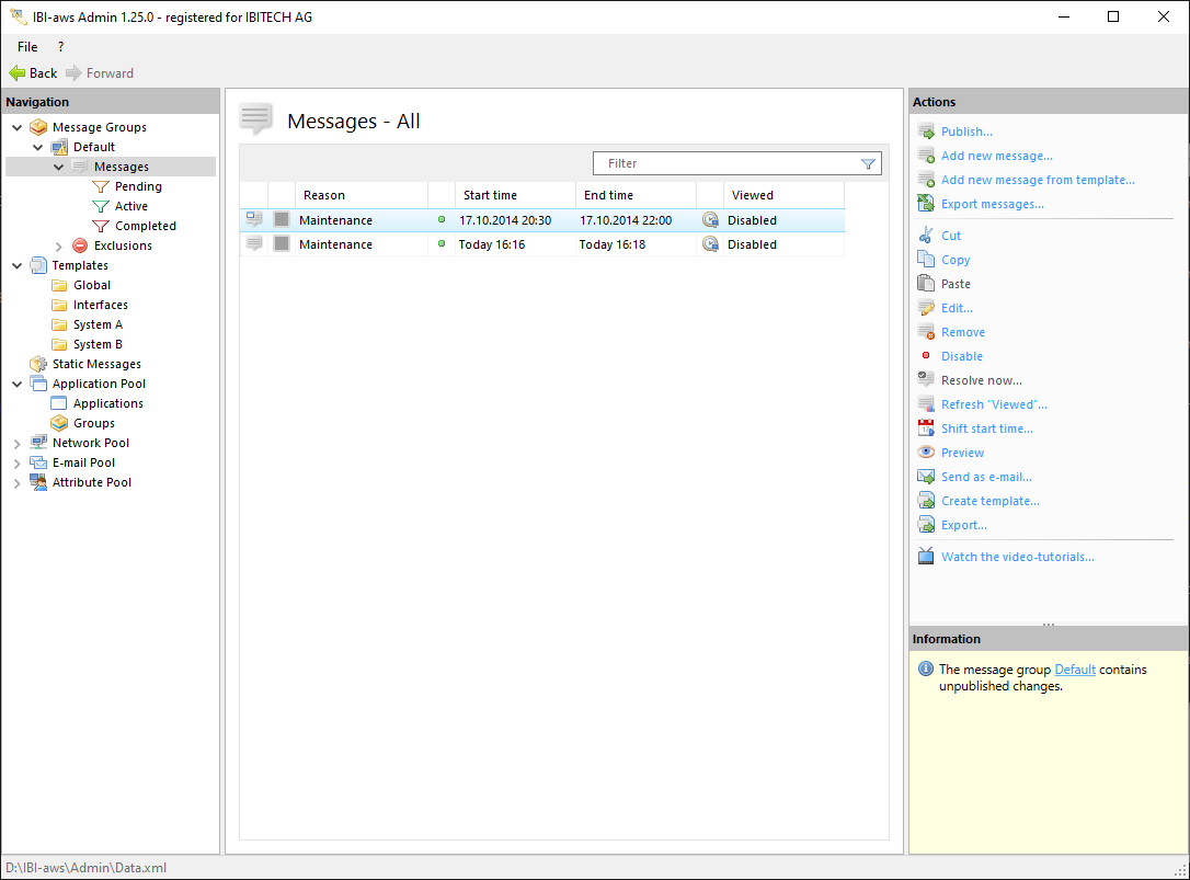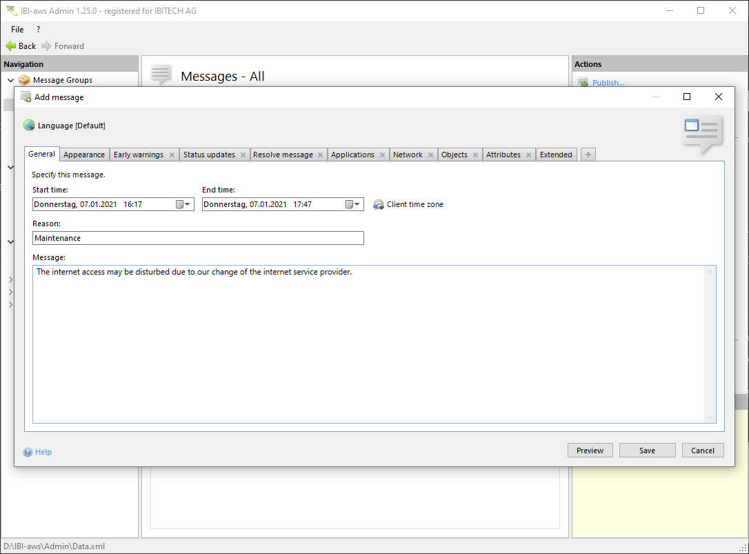 The message can be modified before it is added to the message list. Clicking on Save generates the message.