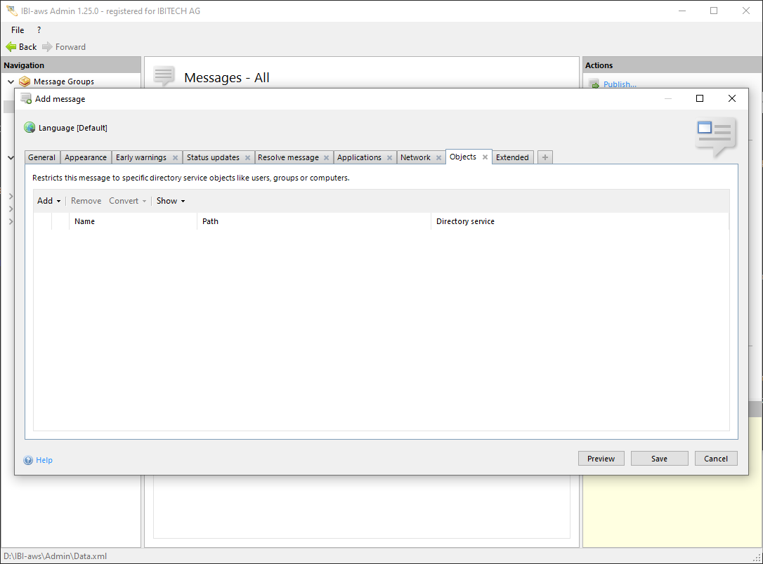 You can add or delete Directory service - Objects restrictions using the buttons above the list. You can either search for Directory service - Objects entities within your ActiveDirectory service Directory using the Directory service Browser or import them by making use of the import function.