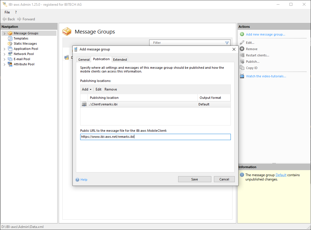 The public URL to the message file must be reachable by all IBI-aws MobileClients. HTTP and HTTPS URLs are allowed.