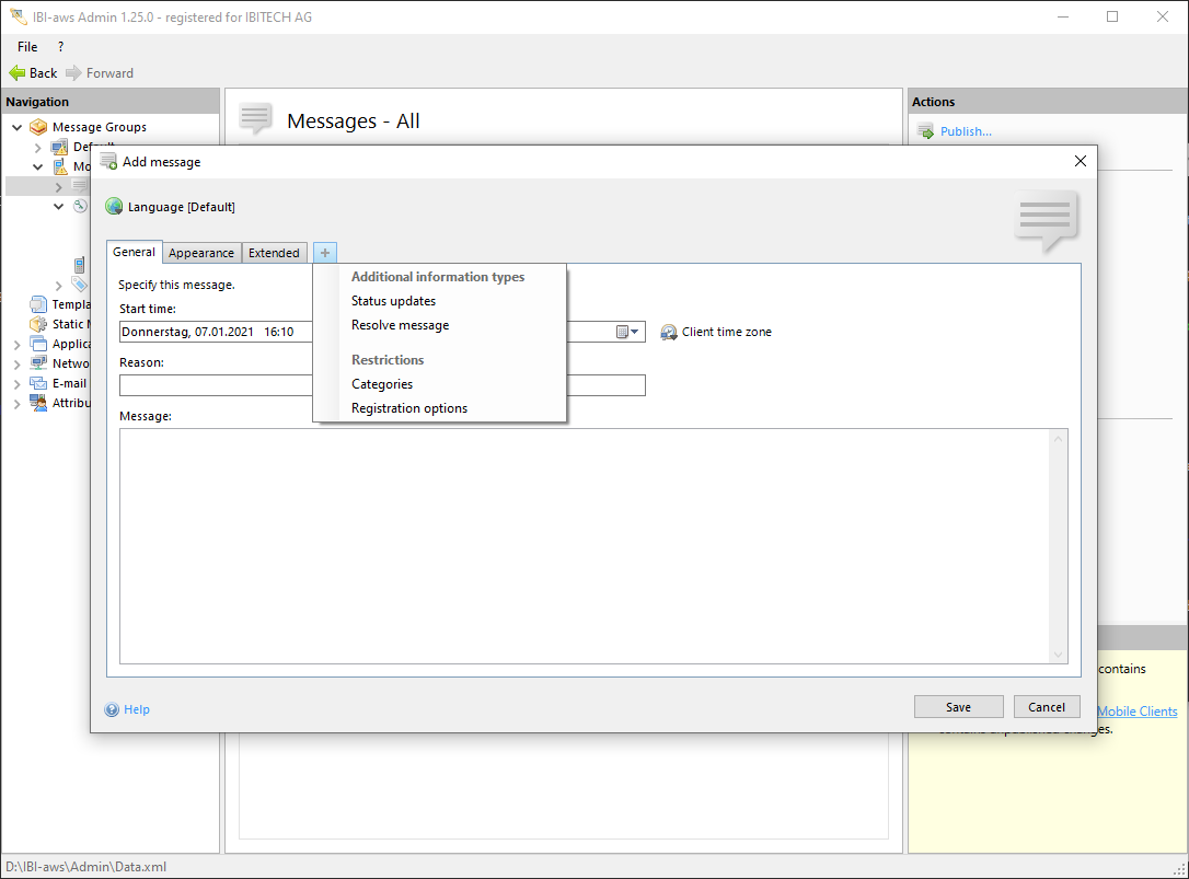 Every restriction type has a tab within the message dialog. These tabs are collapsed by default and can be made visible by clicking on the + button.
