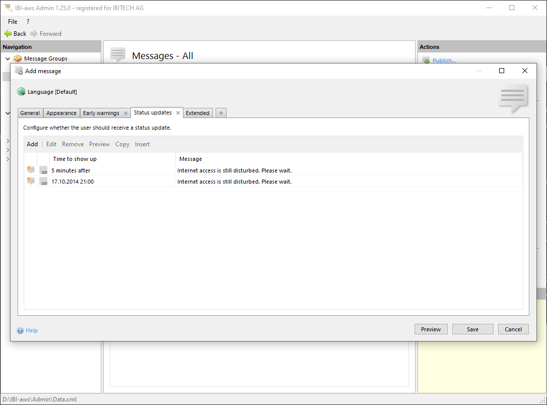 Use this button to view a preview of the status update like it will be displayed on the user's screen.