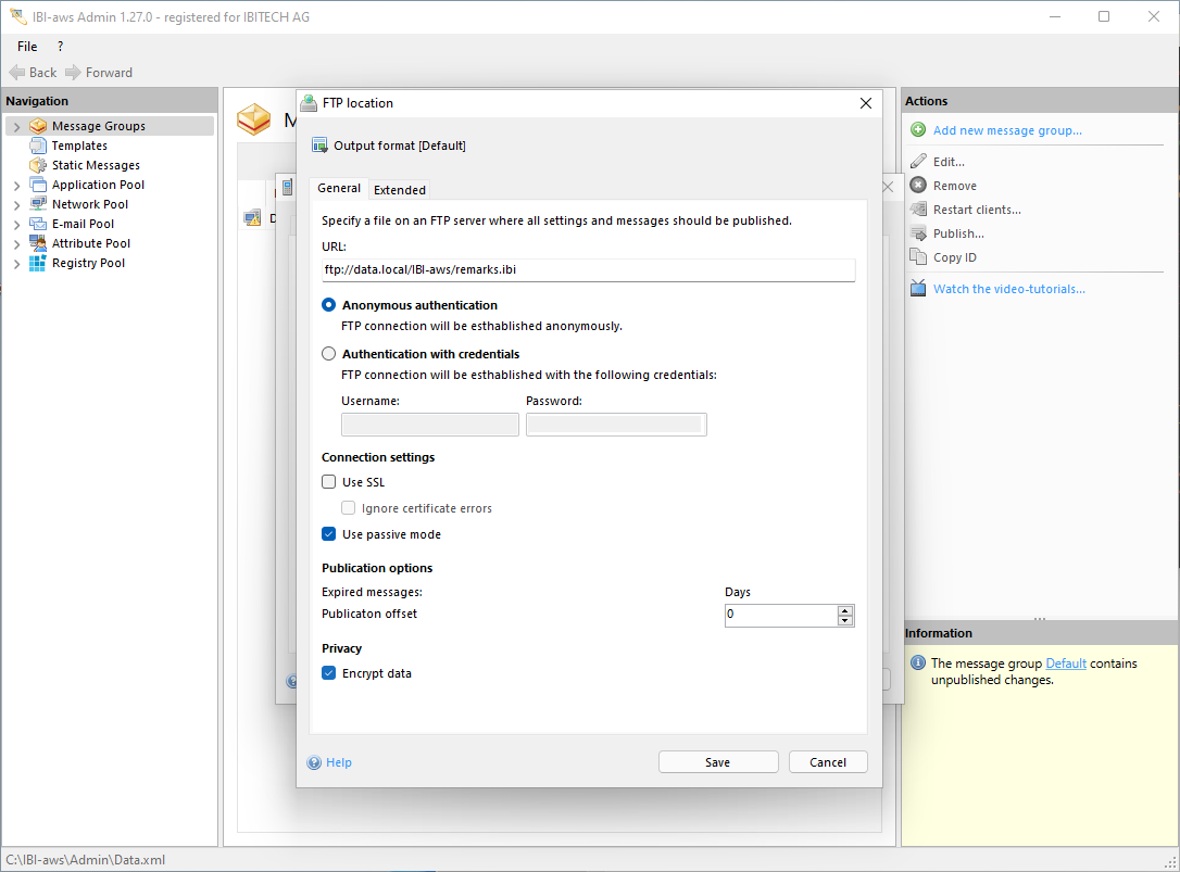 - Default (a message file for the IBI-aws Client will be created)