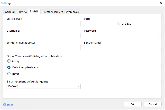 With this option it can be define whether the "Send e-mail" dialog should be displayed after publication.